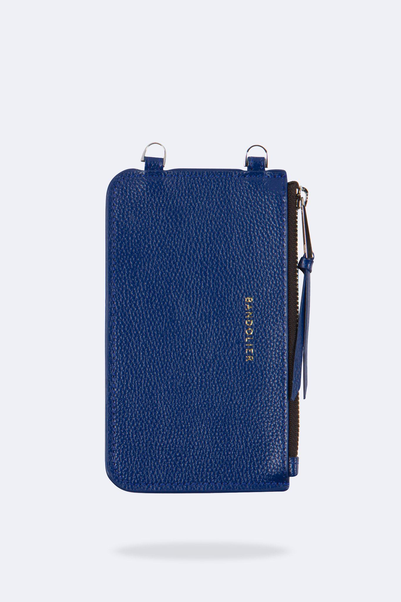 The Bandolier Flat Pouch is an absolute must-have! It's perfect for your keys, passport, lipstick, tickets, sunglasses and so much more. Featuring a classic royal blue leather body and silver-tone details, the Classic Pouch is an add-on to any Bandolier crossbody case. Its d-ring design allows for easy on and off access to your Bandolier strap and features a high quality pull zipper opening.