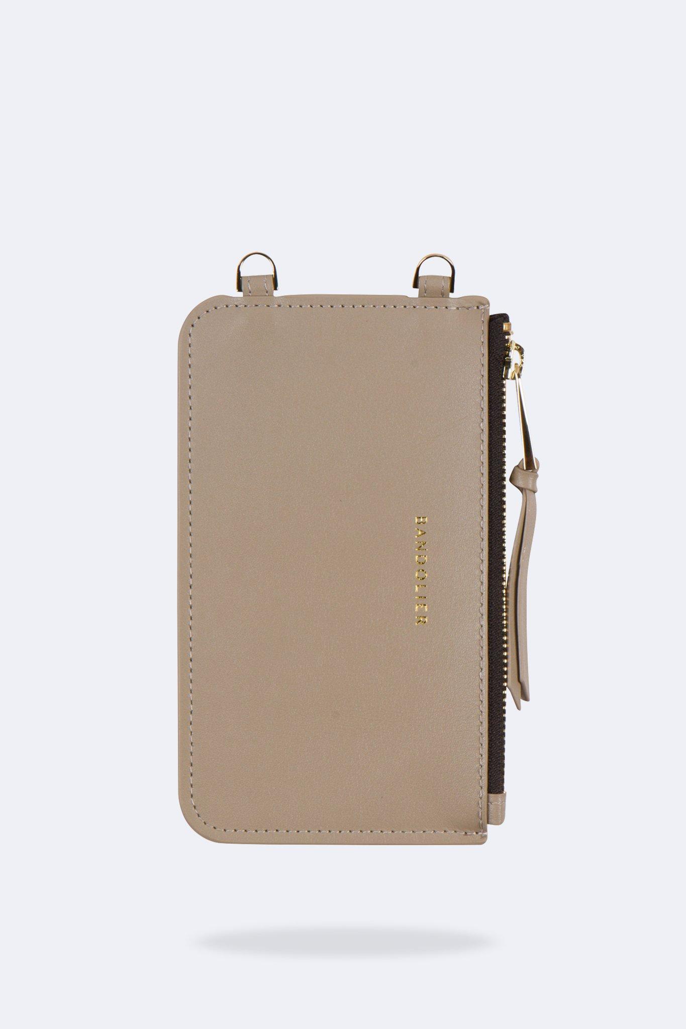 Featuring a smooth taupe leather body and gold-tone details, the Classic Pouch is a must have add-on to any Bandolier crossbody case. Its d-ring design allows for easy on and off access to your Bandolier strap and features a high quality pull zipper opening. This pouch provides ample room for all of your extra essentials like a passport, lipstick or more.