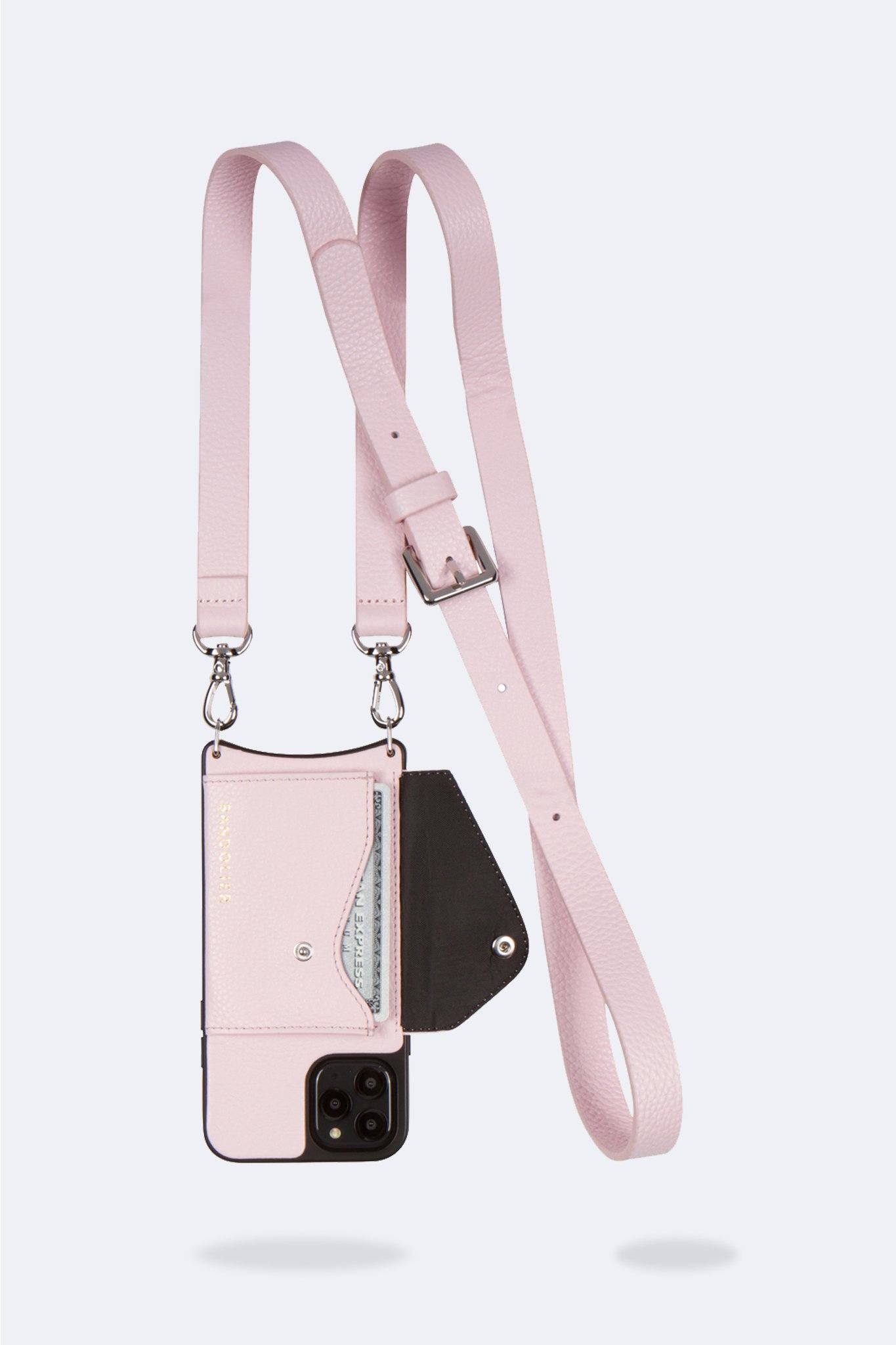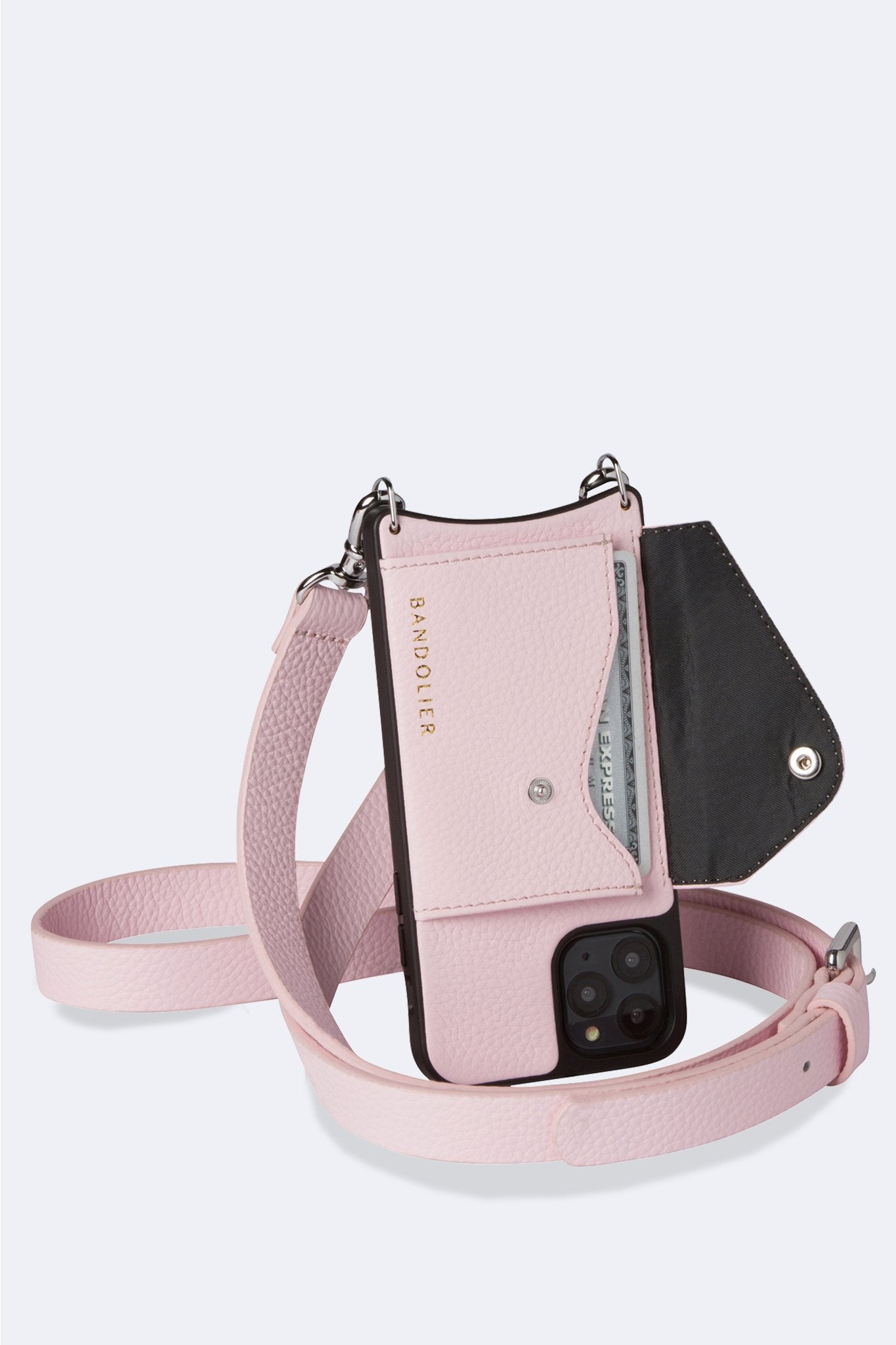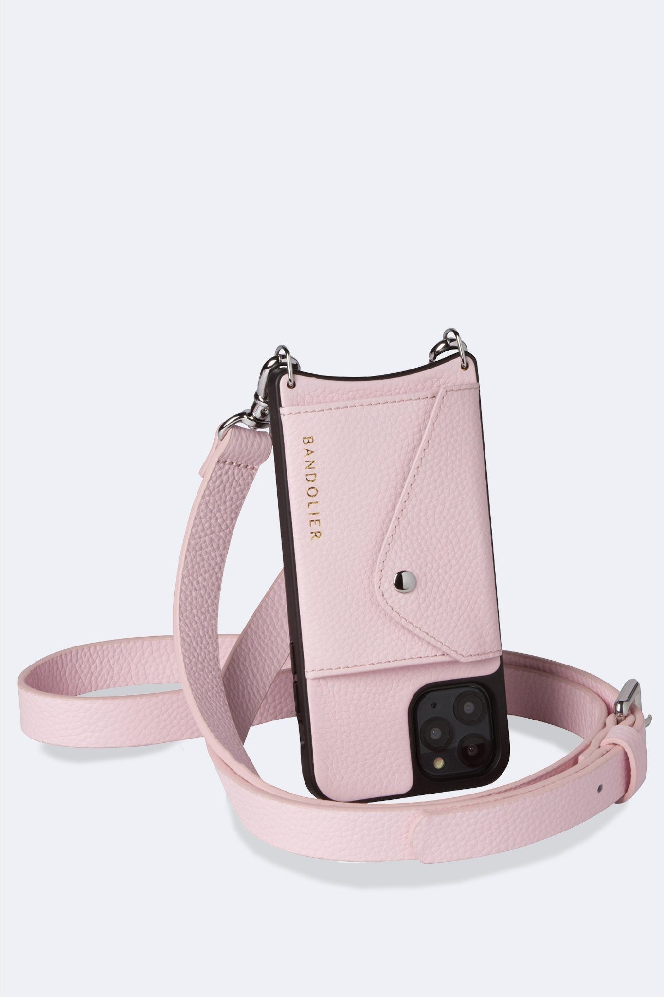 The all-new, totally redesigned Hailey Side-Slot Case is here! Our latest Bandolier cross-body design has all of the features you've been waiting for and more! The Hailey features a primrose pink leather case and silver-tone details. Its adjustable shoulder strap make it an effortlessly chic crossbody case.