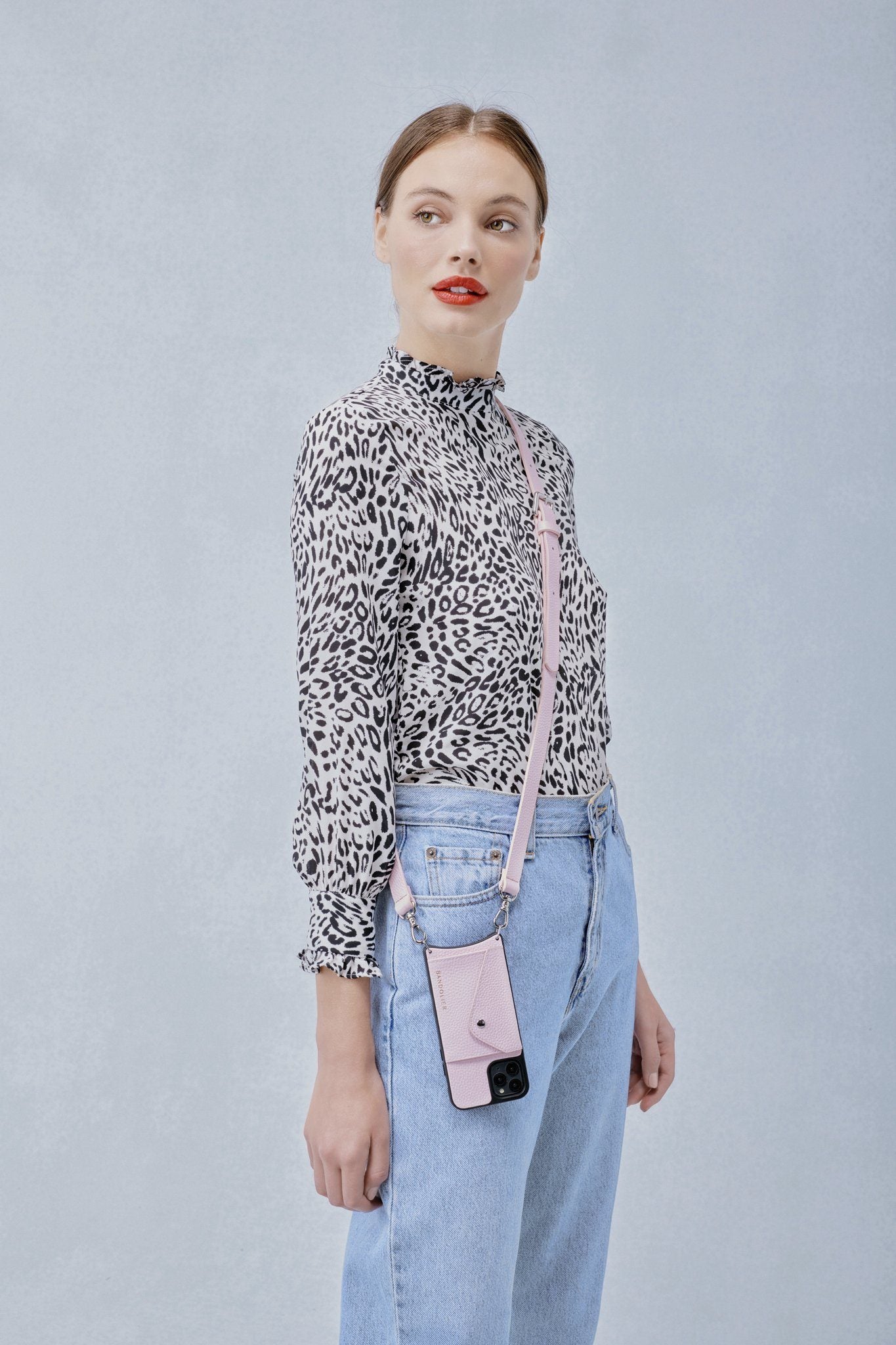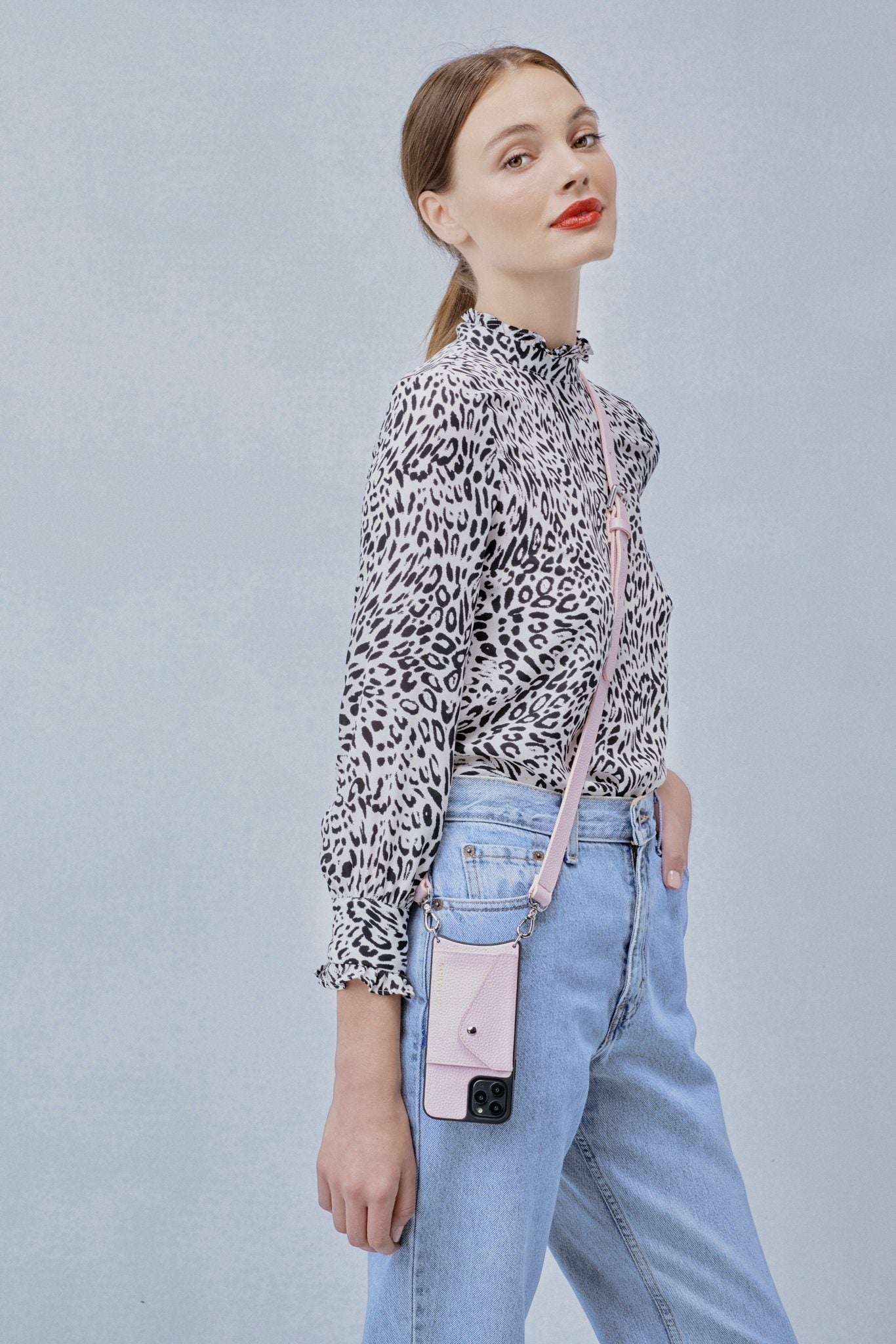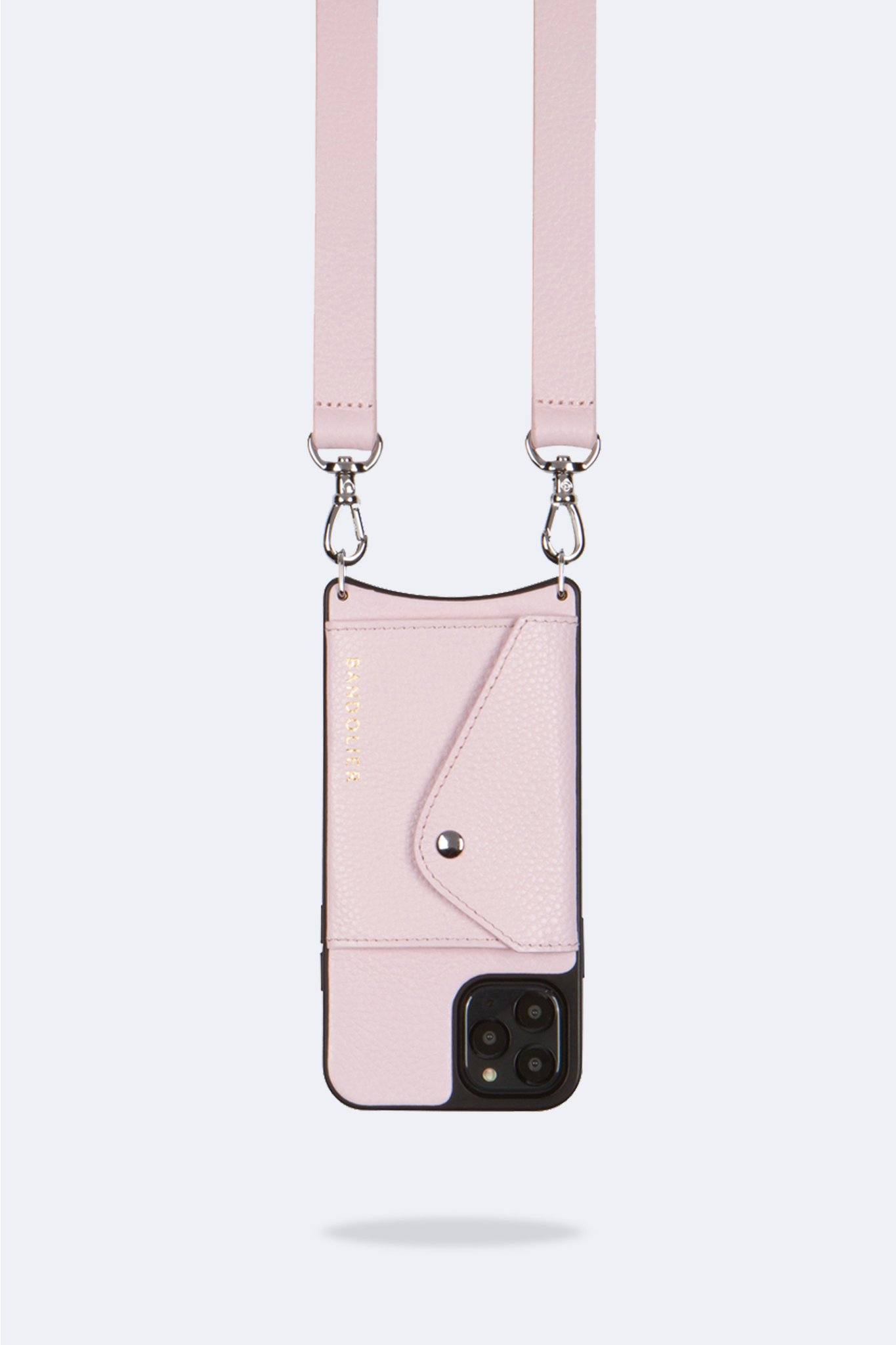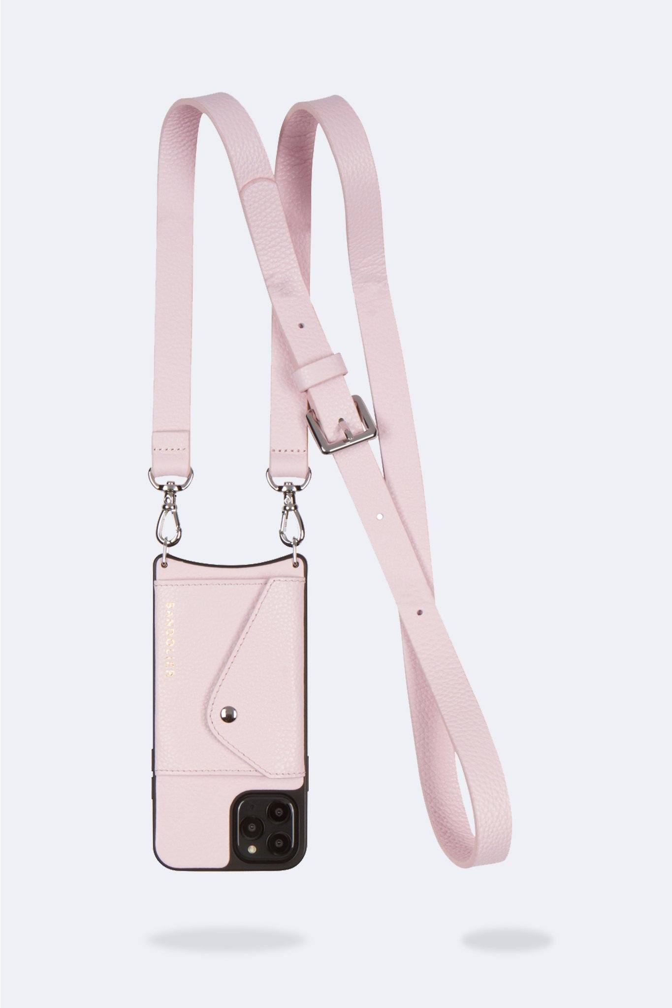 The all-new, totally redesigned Hailey Side-Slot Case is here! Our latest Bandolier cross-body design has all of the features you've been waiting for and more! The Hailey features a primrose pink leather case and silver-tone details. Its adjustable shoulder strap make it an effortlessly chic crossbody case.