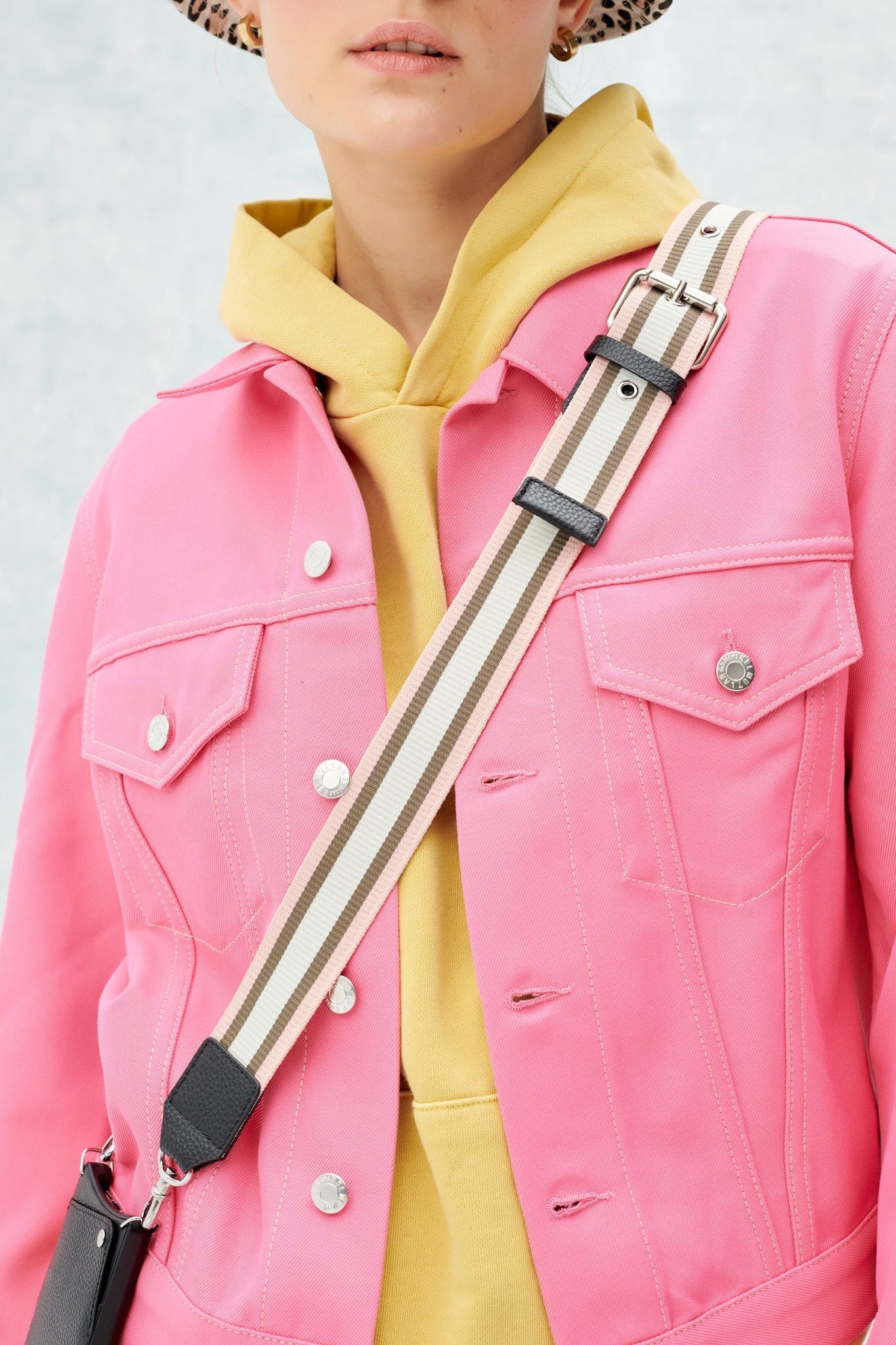 Kimberly Adjustable Nylon Crossbody Strap - Pink/White/Silver
